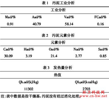 工程處置對象為浙江圣雄皮業(yè)有限公司脫水污泥,污泥性質(zhì)為制革污泥,污泥收到基含水率為70%,設(shè)計污泥處理量30噸/天。浙江圣雄皮業(yè)有限公司污泥的工業(yè)分析見表1、元素分析見表2及低位發(fā)熱量分析見表3、(樣品來源浙江圣雄皮業(yè)有限公司污水處理廠),從工業(yè)分析判定,浙江圣雄皮業(yè)有限公司脫水污泥含有較高的熱值,具有很好的能源利用價值。污泥的元素分析和工業(yè)分析數(shù)據(jù)與污泥焚燒系統(tǒng)的計算關(guān)系密切。