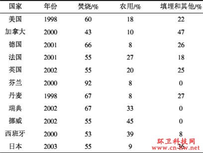 表4發(fā)達(dá)國家不同污泥處置技術(shù)所占的比例