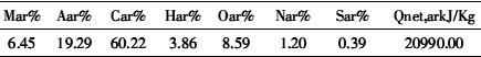 表5燃煤分析數(shù)據(jù)