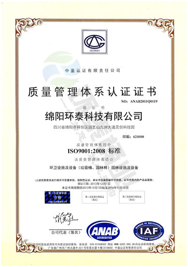 2014年獲得“中鑒認證有限公司”質(zhì)量管理體系認證證書