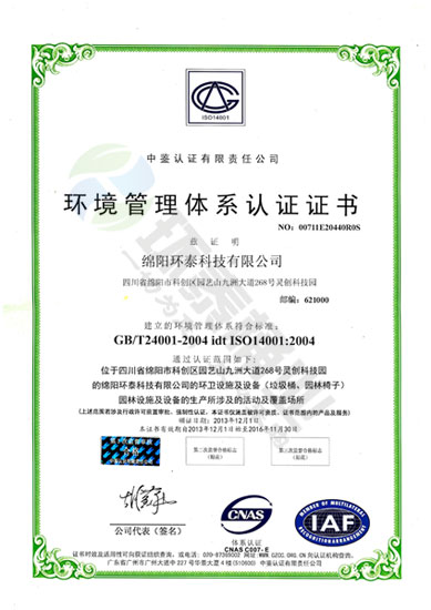2014年獲得“中鑒認證有限公司”環(huán)境管理體系認證證書