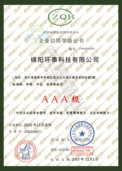 2014年獲得“中國企業(yè)信用記錄中心網(wǎng)”AAA誠信認證單位