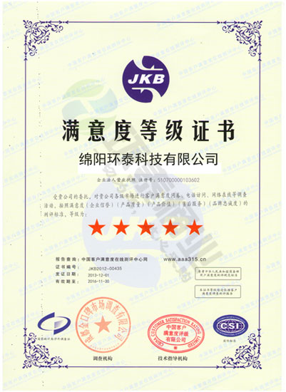 2014年獲得“成都金口碑市場調(diào)查有限公司”五星滿意度等級證書