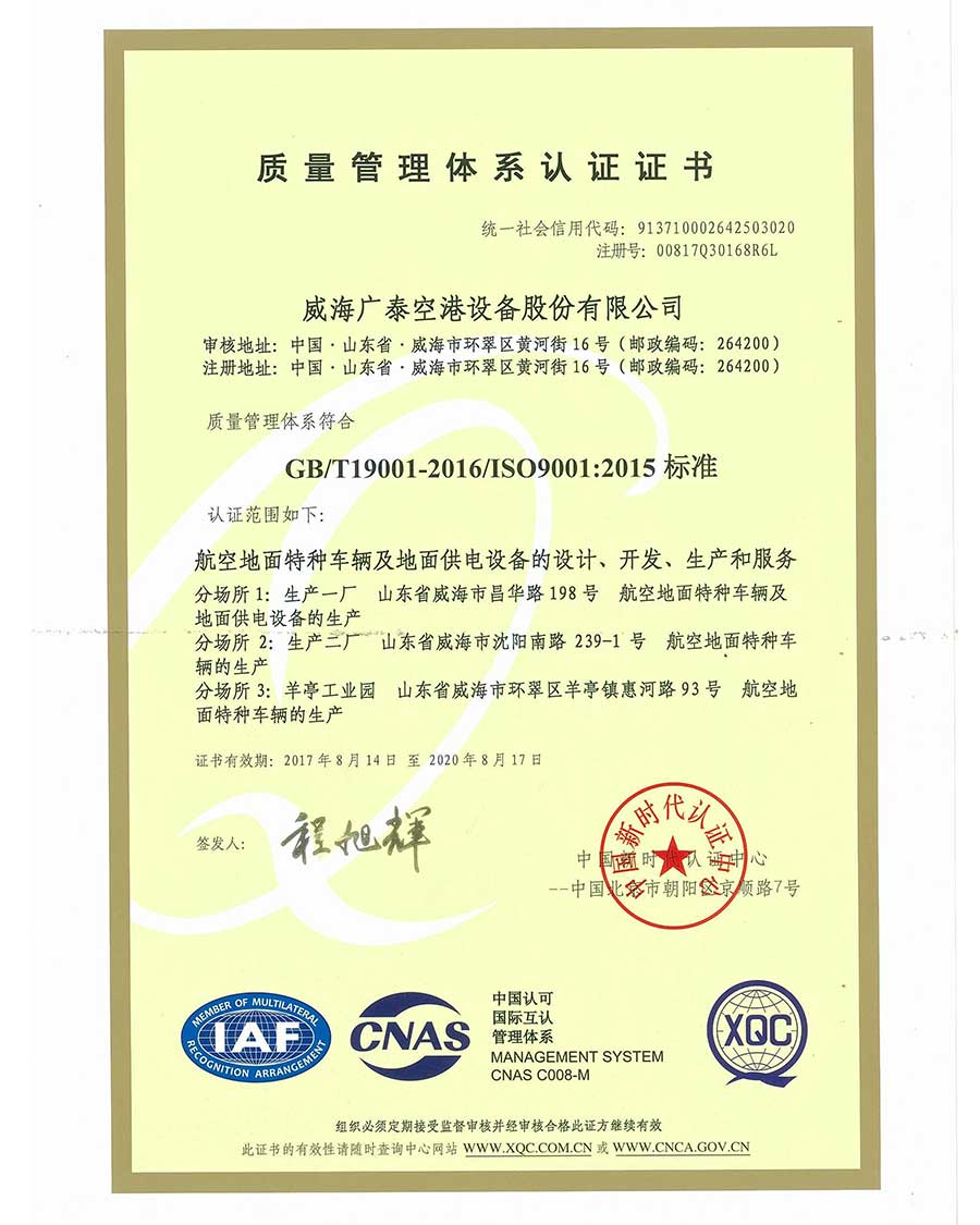 威海廣泰始終遵循“以客戶價值為導(dǎo)向,持續(xù)為客戶提供高質(zhì)量的產(chǎn)品和優(yōu)質(zhì)的服務(wù)”的質(zhì)量方針,不斷開拓創(chuàng)新,矢志追求,以實際行動“實現(xiàn)廣泰夢,助飛中國夢”,“創(chuàng)世界一流品牌,廣泰設(shè)備服務(wù)全球”。