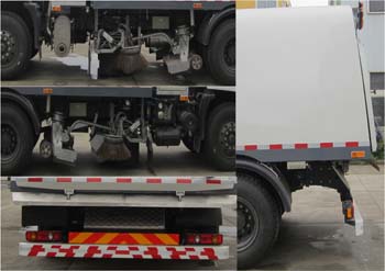 采用3815mm軸距底盤,側(cè)面防護(hù)裝置和后防護(hù)裝置材料為Q235,連接方式均為螺栓連接,后部防護(hù)裝置的斷面尺寸為100×30mm,離地高度為330mm.ABS型號(hào)/生產(chǎn)廠家分別是:ABS 8.1 EA106/博世汽車部件(蘇州)有限公司,ABS 8/克諾爾制動(dòng)設(shè)備(上海)有限公司.該車具備垃圾箱、清掃機(jī)構(gòu)、抽吸機(jī)構(gòu)等裝置,具有清掃路面的功能.