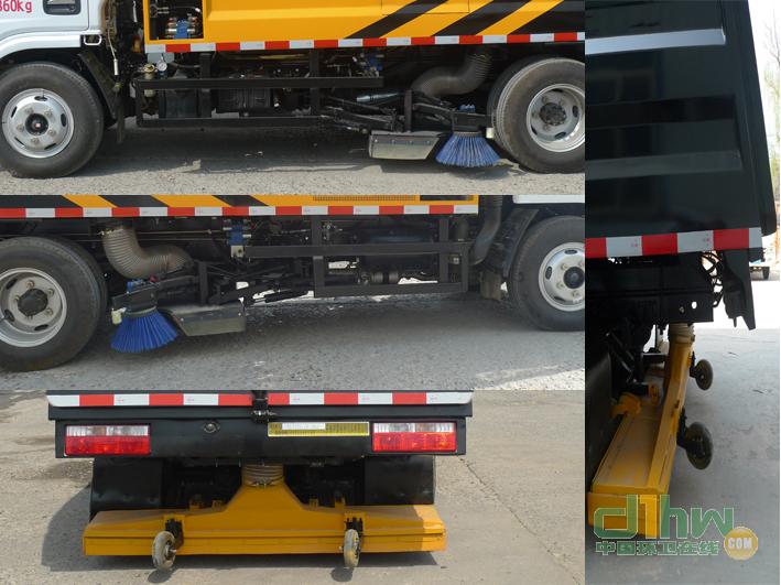 該車主要用于城市道路、廣場及公園路面的清掃;由封閉式車箱、副發(fā)動(dòng)機(jī)、風(fēng)機(jī)、掃刷、吸盤等組成;側(cè)面防護(hù)裝置由工作裝置及部分護(hù)欄組成,側(cè)面防護(hù)裝置材料材質(zhì)為Q235B,與車架采用螺栓連接,后部工作裝置與后下部防護(hù)裝置相干涉,故豁免,后部工作裝置行車時(shí)離地高:195mm;后部選裝滾刷式吸盤。隨底盤裝配ABS,ABS型號: ABS/ASR-24V-4S/4M,ABS生產(chǎn)廠家:襄陽東風(fēng)隆誠機(jī)械有限責(zé)任公司。