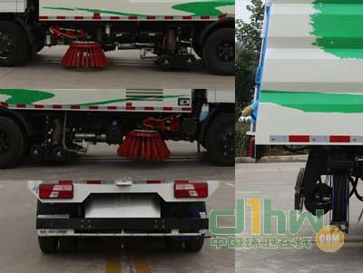 該車裝備有垃圾箱,水箱,洗掃刷等專用裝置,具有清掃和清洗功能;側下防護裝置由專用裝置代替,后下部防護裝置材料為:Q235,后下部防護裝置與車架連接方式為:螺栓連接,后防護裝置尺寸為:截面120X40mm,離地高度470mm;ABS系統(tǒng)型號:VIE ABS-II,ABS系統(tǒng)生產廠家:上海萬捷汽車控制系統(tǒng)有限公司.