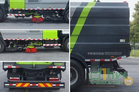 選用5000mm軸距底盤(pán).該車(chē)配置基本型箱體時(shí)整備質(zhì)量11600kg,對(duì)應(yīng)載質(zhì)量4005kg,整車(chē)長(zhǎng)8670mm,整車(chē)高2980mm;配置選裝箱體時(shí)整備質(zhì)量11400kg,對(duì)應(yīng)載質(zhì)量4205kg,整車(chē)長(zhǎng)8670mm,整車(chē)高3020mm;配置選裝帶護(hù)欄清洗時(shí)整備質(zhì)量12200kg,對(duì)應(yīng)載質(zhì)量3405kg,整車(chē)長(zhǎng)9890mm,對(duì)應(yīng)前后懸1515/2240mm,前伸1135mm,整車(chē)高視箱體選裝情況為2980mm或3020mm.側(cè)面防護(hù)裝置和后下部防護(hù)裝置材料為Q235A,與車(chē)輛的連接方式均為螺栓連接,后下部防護(hù)斷面尺寸為240×60mm,最大離地高度465mm.隨底盤(pán)裝ABS,ABS型號(hào):3631010-C2000,4460046440;生產(chǎn)廠(chǎng)家:東科克諾爾商用車(chē)制動(dòng)系統(tǒng)(十堰)有限公司,威伯科汽車(chē)控制系統(tǒng)(中國(guó))有限公司.該車(chē)還可選裝四掃盤(pán)配置、后門(mén)蝶閥外觀、后作業(yè)指示燈.隨底盤(pán)選裝駕駛室外觀.