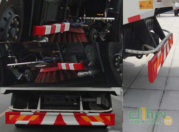 隨底盤選裝前霧燈、頂部裝飾燈、臥鋪側(cè)窗裝飾板。該車配裝垃圾箱,水箱及掃刷等專用裝置,具有清洗,掃刷作業(yè)功能.側(cè),后防護(hù)與車輛均采用焊接連接,材料均為:Q235,后防護(hù)斷面尺寸(mm):245×30, 離地高度:410 mm.隨底盤加裝ABS,ABS型號:ABS型號:3631010-C2000,4460046440;生產(chǎn)廠家:東科克諾爾商用車制動系統(tǒng)(十堰)有限公司,威伯科汽車控制系統(tǒng)(中國)有限公司.