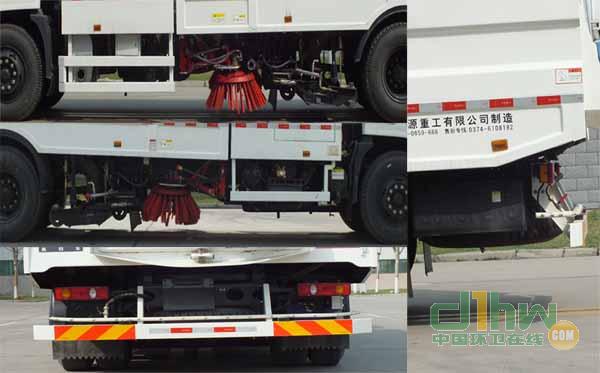1、該車僅選用5600mm軸距.2、選裝最新箱體和新箱體.選裝駕駛室.3、選裝后門球閥時, 整車長9255mm,后懸2225mm;選裝后門蝶閥時, 整車長9190mm,后懸2160mm.4、側(cè)防護由專用作業(yè)裝置替代; 后防護材料材質(zhì)為Q235,連接方式為螺栓連接,截面尺寸為140×60(mm),離地高度為470mm.5、ABS型號為ABS-E 4S/4M和3631010-C2000,生產(chǎn)廠家為威伯科汽車控制系統(tǒng)(中國)有限公司和東科克諾爾商用車制動系統(tǒng)(十堰)有限公司.6、該車安裝具有衛(wèi)星定位功能的行駛記錄儀.7、該車功能:具有清掃和清洗功能;主要專用裝置:箱體和清掃裝置.