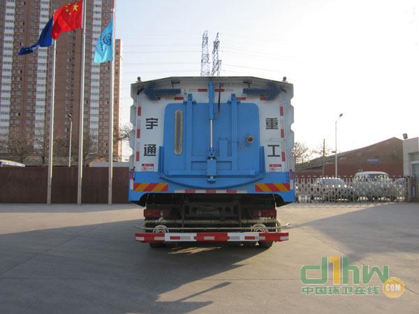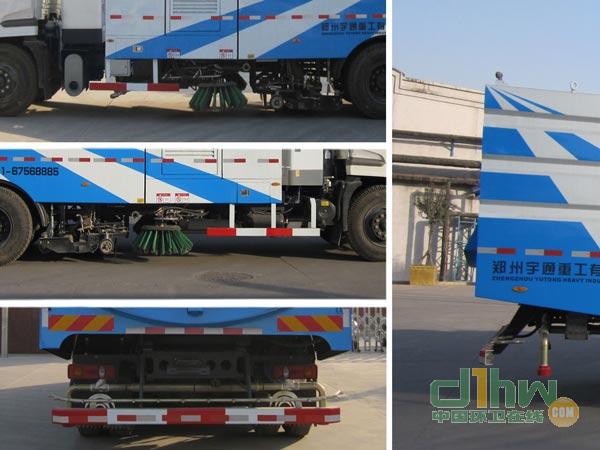 創(chuàng)新開發(fā)的一款集掃路車和高壓清洗車功能于一體的高效環(huán)衛(wèi)設(shè)備。該車機(jī)動(dòng)性能好,油耗低、噪聲小、效率高,深受廣大用戶青睞。特別適用于城市道路路面、道路側(cè)石上平面及立面的清洗,并且能回收清洗污水。它擁有多項(xiàng)專利,技術(shù)處于國(guó)內(nèi)外領(lǐng)先地位。該車采用高壓力、低流量水流沖洗,并結(jié)合掃刷刷洗路面、吸嘴收集污水,實(shí)現(xiàn)了強(qiáng)力去污、高效節(jié)水、污物及污水回收的目的。作業(yè)時(shí),外伸至道路側(cè)石的左(右)旋轉(zhuǎn)洗刷配合低壓水首先對(duì)路面、道路側(cè)石上平面及立面進(jìn)行一次刷洗。同時(shí)緊隨其后的中置超寬吸嘴中的內(nèi)置長(zhǎng)排噴桿和左右兩側(cè)的旋轉(zhuǎn)噴桿的高壓水,對(duì)路面、道路側(cè)石上平面及立面進(jìn)行第二次沖洗,兩側(cè)噴桿形成的“V”型工作夾角,使清洗后的污水自動(dòng)流向中置超寬吸嘴,將污水匯集至吸嘴口、吸入污水箱。經(jīng)過兩次清洗后的道路路面、道路側(cè)石上平面及立面可達(dá)到無垃圾、無灰塵、無污漬、無污水的效果,從而大大提高了城市道路的清潔質(zhì)量