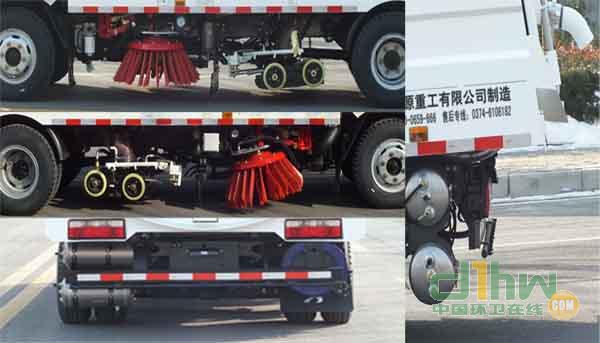僅選用3800mm軸距.側(cè)防護(hù)與專用裝置干涉,故豁免;后防護(hù)材料材質(zhì)為Q235A,連接方式為螺栓連接,截面尺寸為100×35mm,離地高度為340mm.ABS廠家/型號(hào): 東科克諾爾商用車制動(dòng)系統(tǒng)(十堰)有限公司/ABS/ASR-24V-4S/4M.該車專用裝置:清掃裝置和車廂焊合,主要功能:用于道路清掃作業(yè).