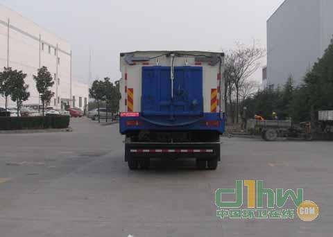 該車承擔城區(qū)主干路的沖洗、清掃作業(yè)的車輛,專用裝置為車輛中置刷盤或吸塵裝置.選裝側部箱體結構及正后結構.選裝側部箱體結構及正后結構時引起整備質量參數(shù)的變化在3%范圍內.選裝側部箱體結構及正后結構對該車作業(yè)功能無影響.兩側防護無法專用作業(yè)裝置代替,后防護材料為Q235,連接方式:用結構連接件固焊在主車后端;.后部防護裝置斷面尺寸(寬×高)50×300(mm).后部防護離地高度:440(mm).裝有具有衛(wèi)星定位的行車記錄儀.ABS型號:3631010-C2000,4460046440;生產(chǎn)廠家:東科克諾爾商用車制動系統(tǒng)(十堰)有限公司,威伯科汽車控制系統(tǒng)(中國)有限公司.隨底盤選裝駕駛室前臉擾流罩.僅采用4500(mm),4700(mm),5000(mm)軸距底盤.