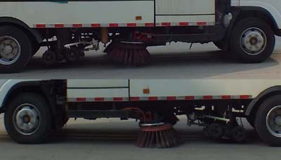 側(cè)防護(hù)裝置與專業(yè)作業(yè)裝置相干涉,故豁免;選裝作業(yè)裝置;后防護(hù)材質(zhì)Q235A,與車架螺栓連接;后防護(hù)的斷面尺寸(mm)為:142×52;后防護(hù)離地高度為:460mm.ABS及控制器型號(hào)為:APG3550500H1,生產(chǎn)廠家為:浙江亞太機(jī)電股份有限公司.該車已粘貼反光標(biāo)識(shí).