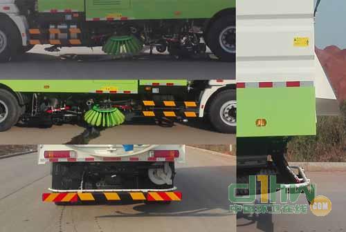 后防護(hù)裝置材料為Q235A,后防護(hù)裝置斷面尺寸:150×50mm,后防護(hù)離地高度:440mm;與車輛的連接方式為螺栓連接.該車安裝具有衛(wèi)星定位功能的行駛記錄儀.ABS控制器型號/生產(chǎn)企業(yè)對應(yīng)關(guān)系:3550X-1010/東風(fēng)電子科技股份有限公司.選裝照片1:選裝車輛外觀;選裝照2:為選裝掃盤.