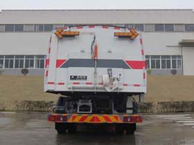僅選用5000mm軸距。該車型有四種配置:配置A(標準配置)、配置B(選裝單點清淤裝置)、配置C(基礎(chǔ)配置)、配置D(選裝前置滾掃配置)。各配置整備質(zhì)量(kg)/載質(zhì)量(kg)/長度(mm)/ /前懸(mm)/接近角(°)/離去角(°)對應(yīng)關(guān)系如下: 配置A:11450/6355/8685/1430/13/11; 配置B:11450/6355/8820/1565/13/11; 配置C:11130/6675/8685/1430/20/15; 配置D:11630/6175/9655/2400/12/11。 可選裝:1、選裝后部作業(yè)指示燈;2、后上、下噴霧裝置。專用裝置代替?zhèn)确雷o豁免;后防護裝置的材料材質(zhì)為:Q235A,連接方式為:螺栓聯(lián)接;后防護裝置的斷面尺寸(寬×高)mm為:60×200;后防護離地高460mm;隨底盤駕駛室選裝前圍擾流罩、前霧燈、臥鋪側(cè)窗裝飾板、頂部裝飾燈。ABS型號:3631010-C2000,4460046440,生產(chǎn)廠家:東科克諾爾商用車制動系統(tǒng)(十堰)有限公司,威伯科汽車控制系統(tǒng)(中國)有限公司。