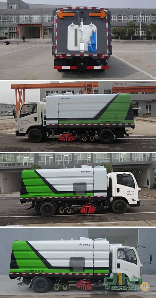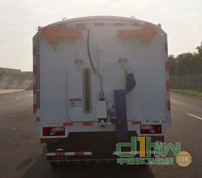 創(chuàng)新開(kāi)發(fā)的一款集掃路車(chē)和高壓清洗車(chē)功能于一體的高效環(huán)衛(wèi)設(shè)備。該車(chē)機(jī)動(dòng)性能好,油耗低、噪聲小、效率高,深受廣大用戶(hù)青睞。特別適用于城市道路路面、道路側(cè)石上平面及立面的清洗,并且能回收清洗污水。它擁有多項(xiàng)專(zhuān)利,技術(shù)處于國(guó)內(nèi)外領(lǐng)先地位。該車(chē)采用高壓力、低流量水流沖洗,并結(jié)合掃刷刷洗路面、吸嘴收集污水,實(shí)現(xiàn)了強(qiáng)力去污、高效節(jié)水、污物及污水回收的目的。作業(yè)時(shí),外伸至道路側(cè)石的左(右)旋轉(zhuǎn)洗刷配合低壓水首先對(duì)路面、道路側(cè)石上平面及立面進(jìn)行一次刷洗。同時(shí)緊隨其后的中置超寬吸嘴中的內(nèi)置長(zhǎng)排噴桿和左右兩側(cè)的旋轉(zhuǎn)噴桿的高壓水,對(duì)路面、道路側(cè)石上平面及立面進(jìn)行第二次沖洗,兩側(cè)噴桿形成的“V”型工作夾角,使清洗后的污水自動(dòng)流向中置超寬吸嘴,將污水匯集至吸嘴口、吸入污水箱。經(jīng)過(guò)兩次清洗后的道路路面、道路側(cè)石上平面及立面可達(dá)到無(wú)垃圾、無(wú)灰塵、無(wú)污漬、無(wú)污水的效果,從而大大提高了城市道路的清潔質(zhì)量
