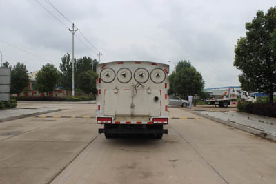 吸塵車:該車用途為路面吸塵,主要裝置為箱體、吸盤、取力器組成。選裝帶掃刷裝置;選裝后方向指示箭頭,側(cè)防護裝置由專用作業(yè)裝置替代,后防護材料:碳鋼/Q235B,連接方式:螺栓加焊接連接,后部防護裝置的主要尺寸參數(shù)(寬×高):120×50(mm),離地高度:420(mm).隨底盤選裝駕駛室.ABS廠家及型號:襄陽東風隆誠機械有限責任公司/ABS/ASR-24V-4S/4M.