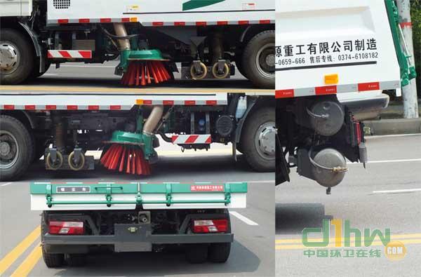 裝有吸塵裝置和清掃裝置,用于道路,廠(場)區(qū)內(nèi)的清掃作業(yè).側(cè)防護(hù)與工作裝置相干涉,故豁免.后防護(hù)材料材質(zhì)為Q235,連接方式為螺栓連接,截面尺寸為100×50mm.離地高度440mm.ABS系統(tǒng)型號:VIE ABS-II; ABS系統(tǒng)生產(chǎn)廠家:上海萬捷汽車控制系統(tǒng)有限公司.選裝新箱體外觀.