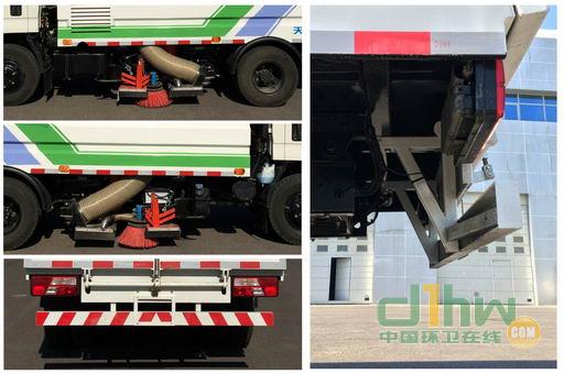 隨底盤選裝前霧燈及左右外后視鏡,兩種外后視鏡僅鏡桿長度不同。選裝B型吸塵盤。后下部防護裝置材料為Q235A,后下部防護斷面尺寸:50×100(mm),離地高度540mm,采用螺栓連接。ABS系統(tǒng)型號:VIE ABS-II,ABS系統(tǒng)生產(chǎn)廠家:上海萬捷汽車控制系統(tǒng)有限公司。車輛安裝吸塵盤,用于道路清掃作業(yè)。