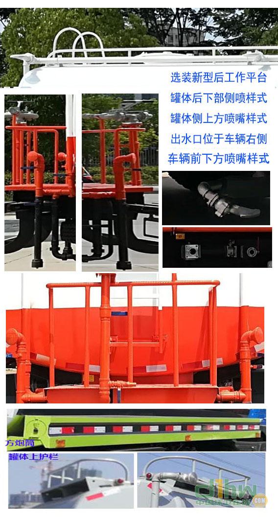 灑水車前沖(噴)后灑,帶側(cè)噴,罐體后帶工作平臺(tái),平臺(tái)上安裝綠化灑水炮,灑水炮可全方位旋轉(zhuǎn),可連續(xù)調(diào)成直沖狀、大雨、小雨、毛毛雨,帶安全護(hù)欄,配備全國質(zhì)量評(píng)比第一名的杭州威龍大功率專用灑水泵,泵可自吸自排,安裝過濾網(wǎng),帶消防接口,可通過消防栓進(jìn)水,帶自流閥,隨車選裝20米綠化卷盤,可噴灑農(nóng)藥,罐體金屬漆。