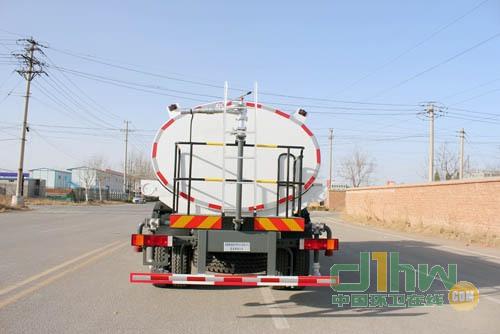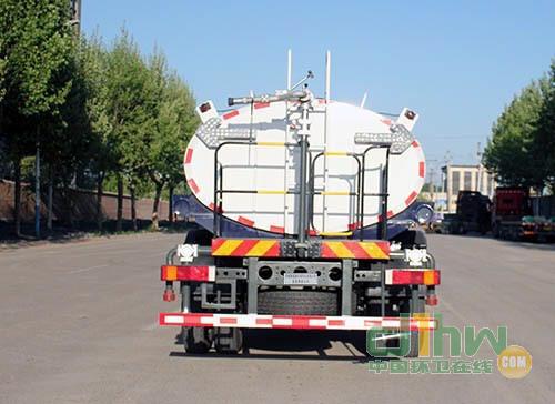 運載介質(zhì):水;密度:1000千克/立方米;罐體有效容積為10.9立方米.罐體外形尺寸(長×寬×高)(mm):5120×2200×1450;側(cè)防護及后下部防護裝置均采用Q235A材質(zhì),均采用螺栓與車架聯(lián)接,后下部防護裝置截面尺寸為高120mm,寬50mm,后下部防護裝置離地高度為500mm;選裝后部指示標志,選裝駕駛室前面罩;隨底盤安裝ABS系統(tǒng),型號為4460046300,生產(chǎn)企業(yè)為威伯科汽車控制系統(tǒng)(中國)有限公司