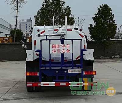 灑水車前沖(噴)后灑,帶側(cè)噴,罐體后帶工作平臺(tái),平臺(tái)上安裝綠化灑水炮,灑水炮可全方位旋轉(zhuǎn),可連續(xù)調(diào)成直沖狀、大雨、小雨、毛毛雨,帶安全護(hù)欄,配備全國質(zhì)量評比第一名的杭州威龍大功率專用灑水泵,泵可自吸自排,安裝過濾網(wǎng),帶消防接口,可通過消防栓進(jìn)水,帶自流閥,隨車選裝20米綠化卷盤,可噴灑農(nóng)藥,罐體金屬漆。