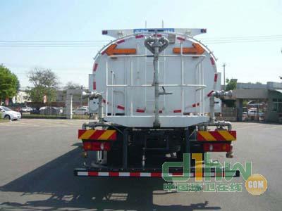 罐體有效容積10立方米,罐體長軸2360mm,短軸1525mm,長4000mm,整車高度3155mm;選裝方罐時,罐體截面長2240mm,寬1280mm,罐體長4000mm,整車高度3050mm.防護(hù)材質(zhì)Q235,側(cè)防護(hù)與支撐座螺栓連接,支撐座與副梁焊接;后防護(hù)與車架螺栓連接;后防護(hù)的斷面尺寸(mm)為:100×80;后防護(hù)離地高度為:400mm.ABS型號:3631010-C2000,4460046440;生產(chǎn)廠家:東科克諾爾商用車制動系統(tǒng)(十堰)有限公司,威伯科汽車控制系統(tǒng)(中國)有限公司.該車已粘貼反光標(biāo)識.隨底盤選裝駕駛室