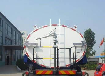 隨底盤安裝ABS系統(tǒng),型號(hào)為4460046300,生產(chǎn)企業(yè)為威伯科汽車控制系統(tǒng)(中國)有限公司;選裝管箱外觀及后部灑水頭;運(yùn)載介質(zhì):水;密度:1000千克/立方米;罐體有效容積為9.2立方米.罐體外形尺寸(長×寬×高)(mm):5000×2100×1310;側(cè)防護(hù)及后下部防護(hù)裝置均采用Q235A材質(zhì),均采用螺栓與車架聯(lián)接,后下部防護(hù)裝置截面尺寸為高100mm,寬50mm,后下部防護(hù)裝置離地高度為500mm;選裝指示標(biāo)志,側(cè)噴頭,后部爬梯,遮陽擋及前部不帶噴水頭