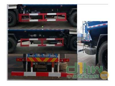 罐體尺寸mm(長(zhǎng)×長(zhǎng)軸×短軸):3300×1600×1100,罐體有效容積3.9立方米。側(cè)后防護(hù)裝置材質(zhì)為Q235,與車體螺栓聯(lián)接,后防護(hù)截面尺寸為35mm×100mm,離地高度為380mm。