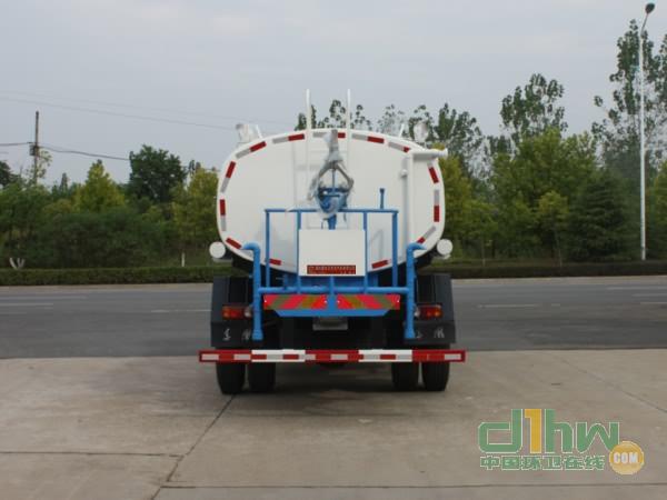 灑水車前沖(噴)后灑,帶側噴,罐體后帶工作平臺,平臺上安裝綠化灑水炮,灑水炮可全方位旋轉,可連續(xù)調成直沖狀、大雨、小雨、毛毛雨,帶安全護欄,配備全國質量評比第一名的杭州威龍大功率專用灑水泵,泵可自吸自排,安裝過濾網,帶消防接口,可通過消防栓進水,帶自流閥,隨車選裝20米綠化卷盤,可噴灑農藥,罐體金屬漆。