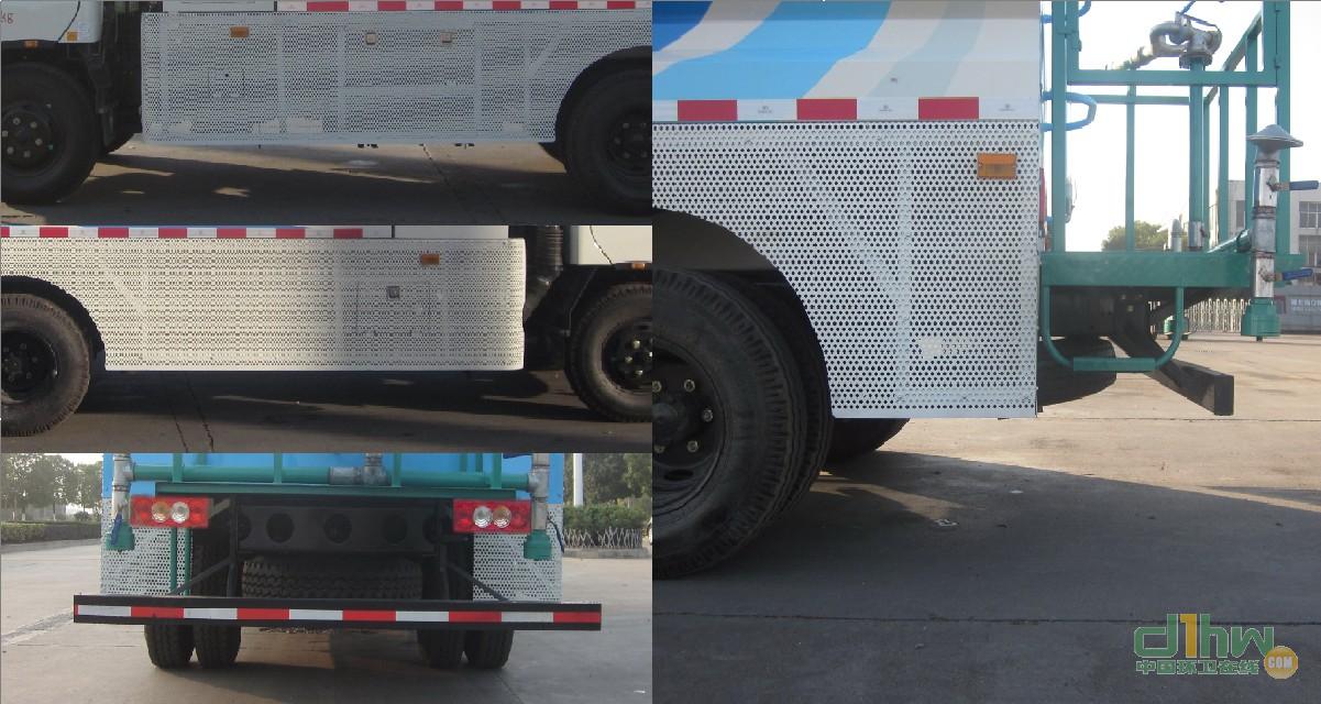罐體有效容積為:16.2立方米,罐體外形尺寸為(長(zhǎng)×寬×高)(mm) :7200×2300×1400側(cè)防護(hù)裝置材料:Q235A;后防護(hù)裝置材料:Q235A;后防護(hù)裝置斷面尺寸:100×50mm,后防護(hù)離地高度:450mm;側(cè)防護(hù)裝置連接方式:螺栓連接,后防護(hù)裝置連接方式:螺栓連接.安裝具有衛(wèi)星定位功能的行駛記錄儀.ABS控制器型號(hào):3550X-1010;生產(chǎn)企業(yè):東風(fēng)電子科技股份有限公司。