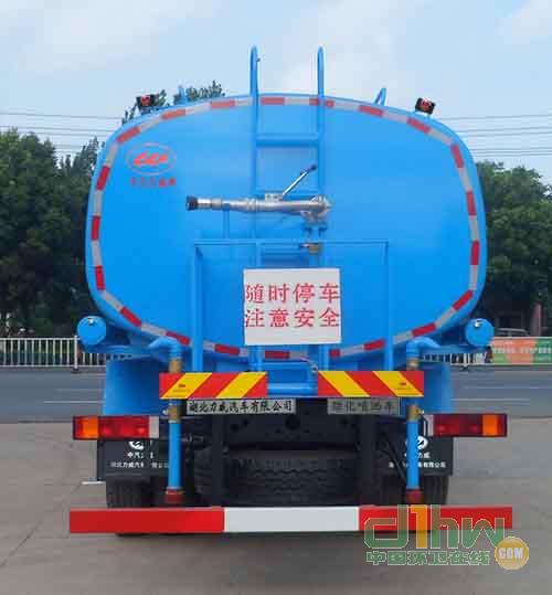 灑水車前沖(噴)后灑,帶側(cè)噴,罐體后帶工作平臺(tái),平臺(tái)上安裝綠化灑水炮,灑水炮可全方位旋轉(zhuǎn),可連續(xù)調(diào)成直沖狀、大雨、小雨、毛毛雨,帶安全護(hù)欄,配備全國質(zhì)量評比第一名的杭州威龍大功率專用灑水泵,泵可自吸自排,安裝過濾網(wǎng),帶消防接口,可通過消防栓進(jìn)水,帶自流閥,隨車選裝20米綠化卷盤,可噴灑農(nóng)藥,罐體金屬漆。
