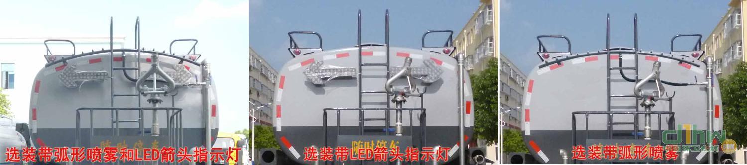 1.罐體有效容積:9.34立方米,僅選用3950mm、4500mm及4700mm軸距底盤改裝。整車長(zhǎng)度(mm)/軸距(mm)/后懸(mm)/離去角(°)/罐體外形尺寸(長(zhǎng)×長(zhǎng)軸×短軸)(mm)/整備質(zhì)量(kg)/額定載質(zhì)量(kg)的對(duì)應(yīng)關(guān)系為(mm): 7630/3950/2450/12/4300×2150×1480/6505/9300, 8180/4500/2450/12/4800×2150×1330/6905/8900, 8580/4700/2650/11/5200×2150×1230/6905/8900。 2.側(cè)防護(hù)及后下部防護(hù)裝置均采用Q235B材質(zhì),均采用螺栓連接,后下部防護(hù)尺寸:150×50(mm),離地面高度500mm。3. ABS系統(tǒng)生產(chǎn)廠家,型號(hào) :焦作博瑞克控制技術(shù)有限公司,J ABS。4.專用裝置:罐體,主要用于路面灑水及園林綠化。5.安裝具有衛(wèi)星定位功能的行駛記錄儀。6,該車可選裝A、后部帶弧形噴霧和LED箭頭指示燈;B、后部帶LED箭頭指示燈;C、后部帶弧形噴霧裝置。7.選裝新款外觀。