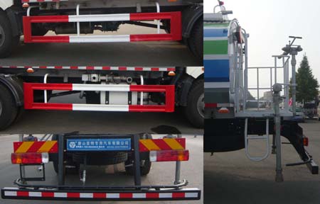 罐體有效容積10立方米.罐體長4000mm,長軸2360mm,短軸1525mm,側后防所用材料材質:Q235.側防護支撐座與副梁焊接,側防護與支撐座螺栓連接,后防護與車架螺栓聯(lián)接,后防護斷面尺寸:120mm×80mm,后防護離地高度:430mm.ABS系統(tǒng)型號為CM4XL,生產企業(yè)為長春科密汽車制動有限公司.