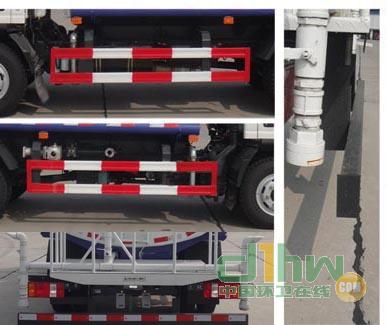 罐體尺寸mm(長×長軸×短軸):3300×1600×1100,罐體有效容積3.9立方米。側(cè)后防護(hù)裝置材質(zhì)為Q235,與車體螺栓聯(lián)接,后防護(hù)截面尺寸為35mm×100mm,離地高度為380mm。
