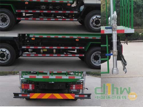 罐體尺寸mm(長×長軸×短軸):3300×1600×1100,罐體有效容積3.9立方米。側(cè)后防護(hù)裝置材質(zhì)為Q235,與車體螺栓聯(lián)接,后防護(hù)截面尺寸為35mm×100mm,離地高度為380mm