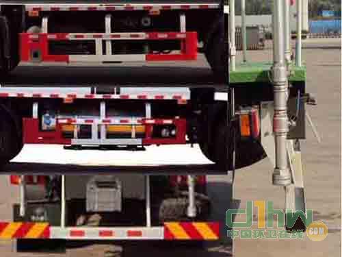 該車側面,后部均安裝有車身反光標識。,采用底盤4500mm軸距。1、運輸介質為水,密度:1000千克/立方米,2、罐體有效容積:9.5立方米;3、罐體外形尺寸(長/長軸/短軸)(mm):3860/2300/1600;4、側防護材料為Q345B,用螺栓連接;后防護材料為Q235A 100X100方管,與車架采用螺栓連接,后防護離地高度為480mm,防抱死制動系統(tǒng)型號為1:ABS-E 4S/4M,生產廠家為威伯科汽車控制系統(tǒng)(中國)有限公司,2:3631010-C2000,生產廠為東科克諾爾商用車制動系統(tǒng)(十堰)有限公司。