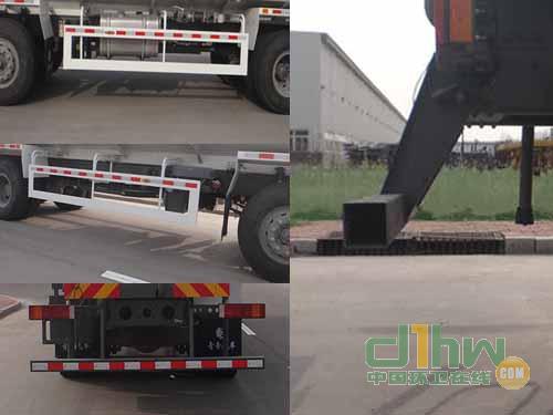 罐體有效容積為:16.2立方米,罐體外形尺寸為(長×寬×高)(mm) :7200×2300×1400側(cè)防護(hù)裝置材料:Q235A;后防護(hù)裝置材料:Q235A;后防護(hù)裝置斷面尺寸:100×50mm,后防護(hù)離地高度:450mm;側(cè)防護(hù)裝置連接方式:螺栓連接,后防護(hù)裝置連接方式:螺栓連接.安裝具有衛(wèi)星定位功能的行駛記錄儀.ABS控制器型號(hào):3550X-1010;生產(chǎn)企業(yè):東風(fēng)電子科技股份有限公司。