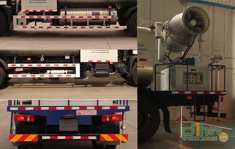 該車用途;用于降塵,噴霧;專用裝置名;水泵,噴霧機;專用裝置型號;80QZB-60/90N,WF80;ABS的型號為1.ABS-E 4S/4M,生產(chǎn)廠為威伯科汽車控制系統(tǒng)(中國)有限公司;2.3631010-C2000,生產(chǎn)廠為東科克諾爾商用車制動系統(tǒng)(十堰)有限公司 ;側(cè)防護裝置同車架螺栓連接,材料為鋁合金+Q235;后防護裝置同車架螺栓連接,材料為Q235,截面尺寸為120mm×60mm,離地高度為470mm. 罐體尺寸長度3500×長軸2400×短軸1450mm;罐體有效容積為9.7立方米.該車具有衛(wèi)星定位功能的行駛記錄儀.