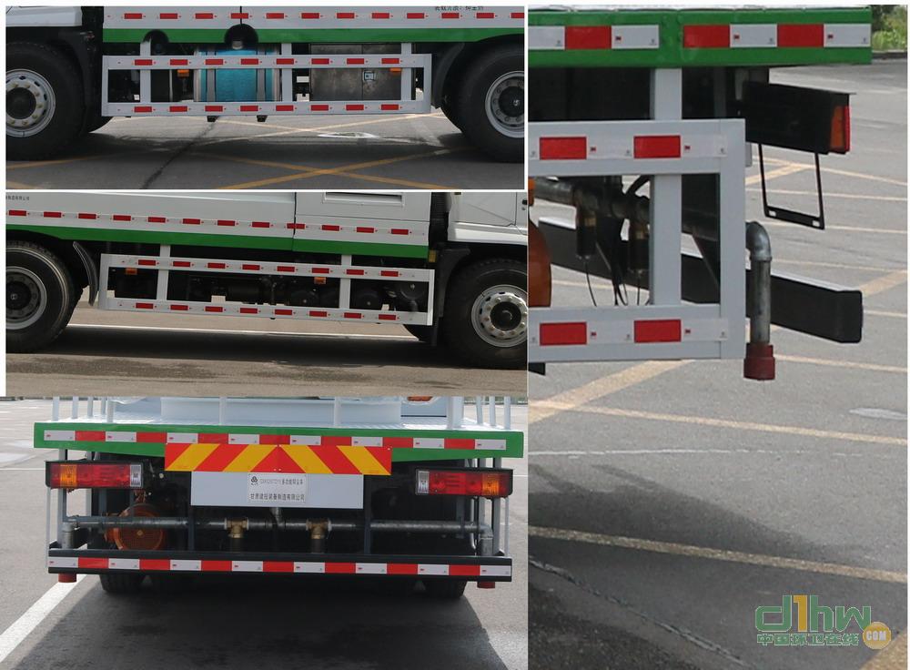 該車(chē)專(zhuān)用裝置有噴霧降塵裝置和罐體,通過(guò)噴灑抑塵固化劑等實(shí)現(xiàn)抑制揚(yáng)塵污染.罐體外形尺寸(長(zhǎng)×寬×高)(毫米):3600×2242×1692;罐體有效容積:11.4立方米.側(cè)防護(hù)材料為Q235,連接方式為螺栓鏈接,后防護(hù)材料為Q235,連接方式為螺栓連接,截面尺寸為120毫米×80毫米,離地高度為485毫米.ABS系統(tǒng)生產(chǎn)廠(chǎng)家:西安正昌電子有限責(zé)任公司,型號(hào):ZQFB-V.安裝具有衛(wèi)星定位功能的行駛記錄儀.