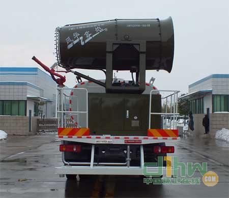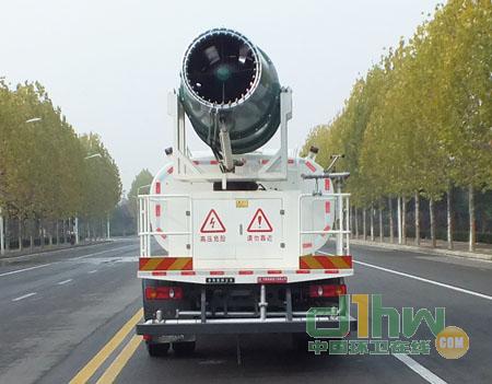 該車隨底盤選裝駕駛室前臉擾流罩.選裝前霧燈.選裝臥鋪側窗裝飾板,選裝導流罩.罐體外形尺寸(長×長軸×短軸):3450×2280×1300(mm),運輸介質:抑塵液,密度800千克/立方米,罐體有效容積7.6立方米.側防護裝置材料為鋁合金,與車輛采用螺栓連接,后防護裝置材料為Q235B,與車輛采用螺栓連接,截面尺寸為:110×60(mm),離地高度為:525(mm).ABS型號:3631010-C2000,4460046440;生產廠家:東科克諾爾商用車制動系統(tǒng)(十堰)有限公司,威伯科汽車控制系統(tǒng)(中國)有限公司. 該車主要功能:噴霧抑塵和清洗,用于城市環(huán)衛(wèi)作業(yè);主要專用裝置:風送式噴霧機和罐體.選裝駕駛室.