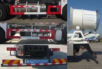 抑塵劑,密度:920千克/立方米,罐體有效容積12立方米,罐體長4000mm,寬2480mm,高1310mm.防護(hù)裝置材質(zhì)Q235,側(cè)防護(hù)支撐座與副車架焊接,側(cè)防護(hù)與支撐座螺栓連接;后防護(hù)與車架螺栓連接,后防護(hù)斷面尺寸(mm):100×80,后防護(hù)離地高度為:500mm.ABS系統(tǒng)型號為4460046300,生產(chǎn)企業(yè)為威伯科汽車控制系統(tǒng)(中國)有限公司.可在車身噴涂或粘貼不同的宣傳文字、圖形、標(biāo)識等
