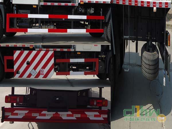 選用4350+1350mm軸距。隨底盤選裝頂部裝飾燈。選裝霧炮。長度為10800mm時,后伸200mm;長度為11370mm時,后伸770mm;長度為11880mm時,后伸1280mm;長度為11230mm時,后伸630mm。側(cè)防護(hù)裝置的材料為鋁合金,連接方式為螺栓連接;后防護(hù)裝置材料為Q235B,連接方式為焊接,后部防護(hù)裝置的截面尺寸為105×55mm,離地高度為540mm。安裝具有衛(wèi)星定位功能的行駛記錄儀。隨底盤安裝的ABS生產(chǎn)廠家/型號:東科克諾爾商用車制動系統(tǒng)(十堰)有限公司/3631010-C2000。