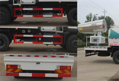 該車用途為抑塵降霾。主要裝置為水罐、風(fēng)機。罐體有效容積為:12立方米;運輸介質(zhì):抑塵劑;密度:900千克/立方米. 罐體外形尺寸(長×長軸×短軸)(mm)4500×2410×1640.當(dāng)整備質(zhì)量為14500kg時,載質(zhì)量:10305(10370)kg,當(dāng)整備質(zhì)量為13500kg時,載質(zhì)量:11305(11370)kg,整車長度/軸距/前懸/后懸/后伸(mm)對應(yīng)關(guān)系為:10180/4350+1350/1480(1500)/3000(2980)/無; 11180/4350+1350/1480(1500)/3000(2980)/1000; 11180/5350+1350/1480(1500)/3000(2980)/無;12180/5350+1350/1480(1500)/3000(2980)/1000。側(cè)、后防護(hù)材料為Q235B,螺栓連接,后部防護(hù)裝置斷面尺寸(寬×高)50×120(mm),后部防護(hù)離地高度:530mm.隨底盤選裝駕駛室,選裝前部發(fā)動機保護(hù)罩樣式.可選裝不同風(fēng)機樣式、選裝前沖、后灑、高炮;左后側(cè)或右后側(cè)選裝噴霧機控制柜。ABS生產(chǎn)廠家:東科克諾爾商用車制動系統(tǒng)(十堰)有限公司,型號:3631010-C2000。