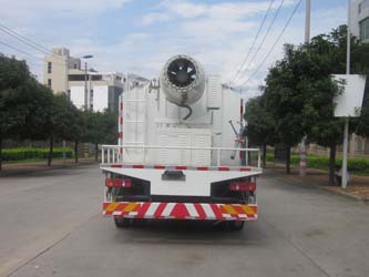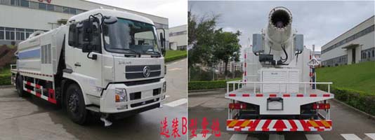 僅選用5000mm軸距;選裝A型霧炮時,車高3180mm。選裝B型霧炮時,車高3345mm??刹谎b開花式高壓噴槍和后噴嘴。選裝前圍擾流罩,選裝前霧燈,選裝臥鋪側窗裝飾板,駕駛室頂部裝飾燈為選裝件。側防護及后部防護裝置的材料材質:Q235A;連接方式為螺栓連接;后部防護裝置的斷面尺寸(寬×高)mm:60×230;后部防護裝置的離地高度460mm.ABS型號:3631010-C2000,4460046440;生產(chǎn)廠家:東科克諾爾商用車制動系統(tǒng)(十堰)有限公司,威伯科汽車控制系統(tǒng)(中國)有限公司.該車配置有噴霧系統(tǒng)等專用裝置,主要用于改善空氣質量,降低空氣中的灰塵,霧霾等現(xiàn)象.
