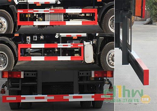 側(cè)防護及后下部防護裝置均采用Q235A材質(zhì),均采用螺栓與車架聯(lián)接,后下部防護裝置截面尺寸為高120mm,寬50mm,后下部防護裝置離地高度為500mm;隨底盤安裝ABS系統(tǒng),型號為4460046300,生產(chǎn)企業(yè)為威伯科汽車控制系統(tǒng)(中國)有限公司;后伸/車長/軸距/后懸(mm)對應(yīng)關(guān)系分別為200/9000/4700/2850(mm),200/8550/4500/2600(mm);隨底盤選裝駕駛室前面罩