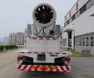 選用5000mm軸距。選裝A型霧炮時,車輛外形長9235mm,外形高3790mm,后懸2805mm,整備質(zhì)量11500kg,載質(zhì)量4105kg;選裝B型霧炮時,車輛外形長9380mm,外形高3890mm,后懸2950mm,整備質(zhì)量11750kg,載質(zhì)量3855kg??刹谎b開花式高壓噴槍和后噴嘴。隨底盤駕駛室選裝前圍擾流罩、前霧燈、側(cè)窗裝飾板,駕駛室頂部裝飾燈為選裝件。側(cè)防護(hù)及后部防護(hù)裝置的材料材質(zhì):Q235A;連接方式為螺栓連接;后部防護(hù)裝置的斷面尺寸(寬×高)mm:60×230;后部防護(hù)裝置的離地高度460mm。ABS系統(tǒng)型號/生產(chǎn)廠家:3631010-C2000,4460046440,生產(chǎn)廠家:東科克諾爾商用車制動系統(tǒng)(十堰)有限公司,威伯科汽車控制系統(tǒng)(中國)有限公司。該車配置有噴霧系統(tǒng)等專用裝置,主要用于改善空氣質(zhì)量,降低空氣中的灰塵,霧霾等現(xiàn)象.