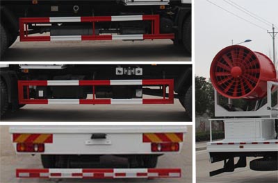 該車主要用途為抑塵降霾。主要裝置為水罐、風(fēng)機(jī).運(yùn)輸介質(zhì)為:抑塵劑,密度:780千克/立方米.罐體有效容積:8.5立方米,罐體外形尺寸(長×寬×高)(mm): 3100×2380×1670,3250×2300×1600.側(cè)防護(hù)采用冷彎型鋼/Q235,螺栓連接。后防護(hù)采用冷彎型鋼/Q235,焊接,截面高120mm,截面寬50mm,下邊緣離地高490mm.可選裝不同形狀的風(fēng)機(jī)。ABS型號(hào):3631010-C2000,4460046440,生產(chǎn)廠家:東科克諾爾商用車制動(dòng)系統(tǒng)(十堰)有限公司,威伯科汽車控制系統(tǒng)(中國)有限公司.駕駛室前臉擾流罩為選裝件.選裝前霧燈,增加無霧燈照片.當(dāng)整車長為9000mm時(shí),后懸為2870mm,無后伸;當(dāng)整車長為9350mm時(shí),后懸為2820mm,此時(shí)后伸為400mm.