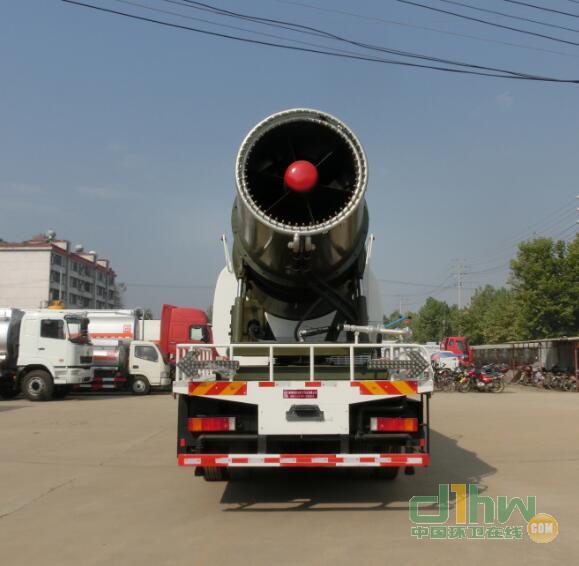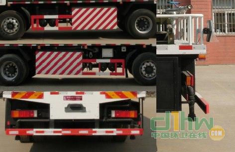 隨底盤選裝駕駛室.側(cè),后防護(hù)裝置材料材質(zhì):Q235B,側(cè),后防護(hù)均用螺栓連接,后部防護(hù)裝置斷面尺寸(寬×高)60×100(mm),后部防護(hù)離地高度:540mm.后伸量900mm.裝備ABS,ABS的型號(hào)為ABS-E 4S/4M,生產(chǎn)廠家為威伯科汽車控制系統(tǒng)(中國)有限公司.除塵裝置采用廣東梅州風(fēng)華環(huán)保設(shè)備有限公司所研發(fā)的實(shí)用新型專利\"車載移動(dòng)式